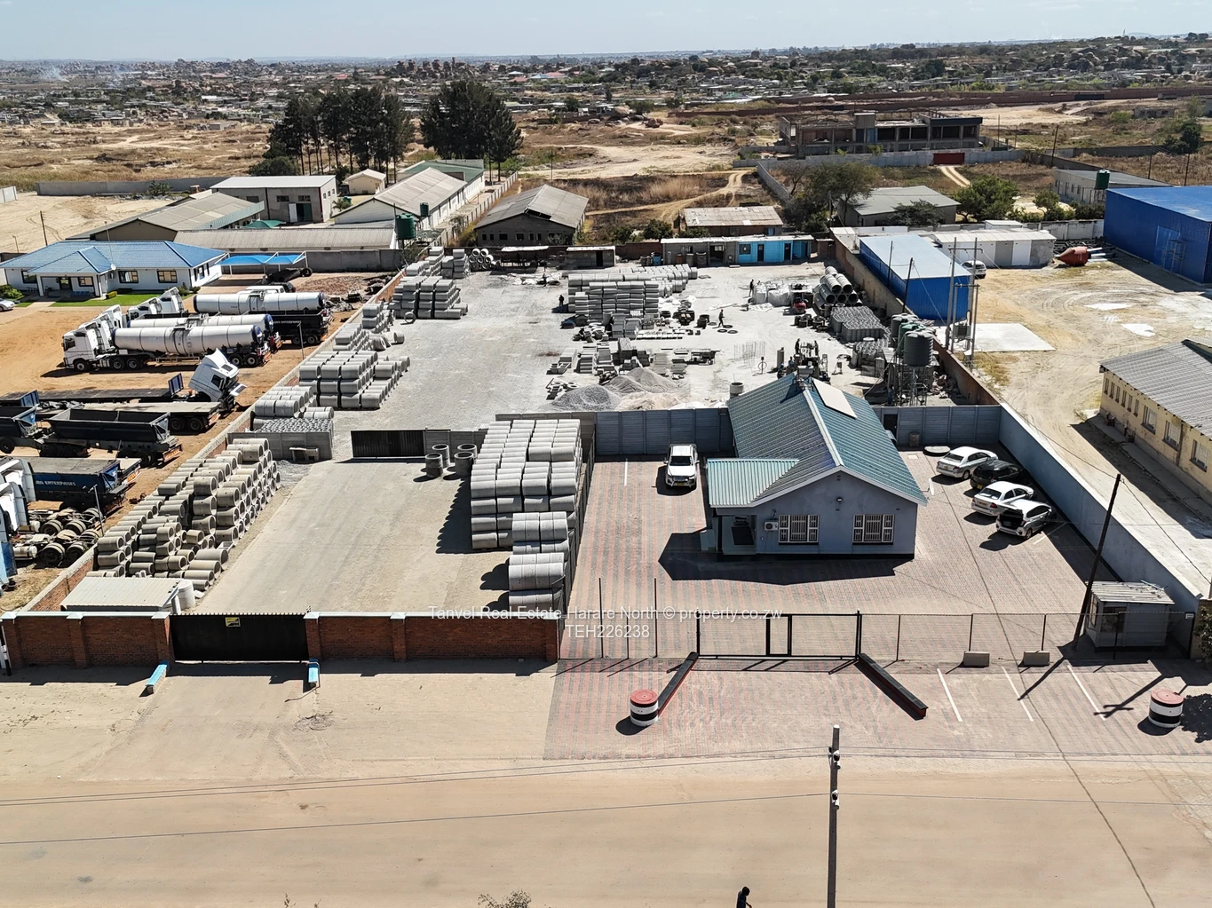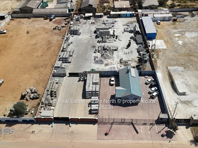 Commercial property sitting on +4000 sqm. Walled, gated, paved and a security booth. An office block with 6 offices, a boardroom, a reception area, 2 toilets and a kitchen.
