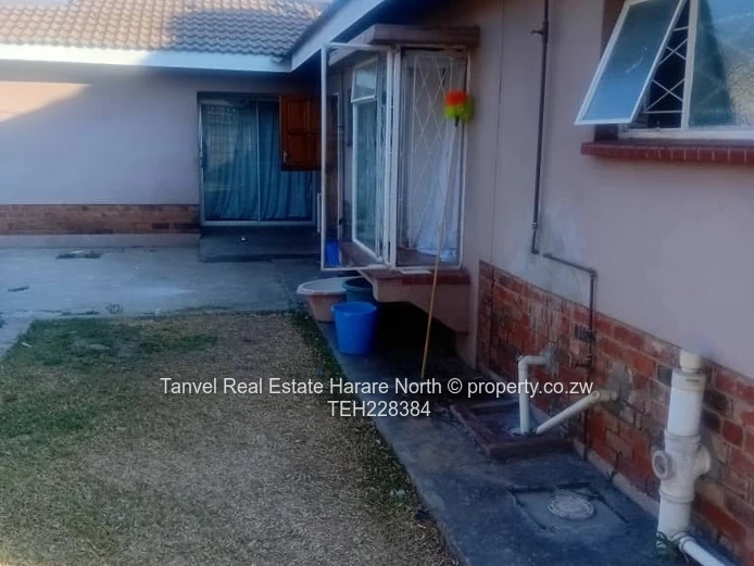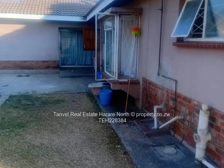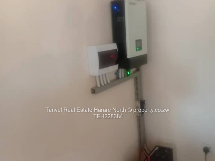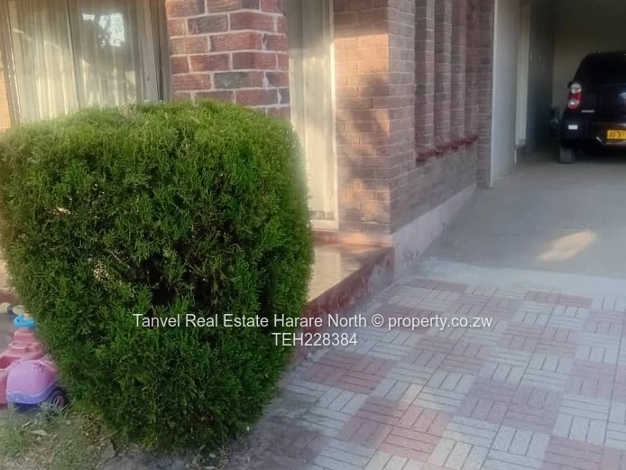 Captivating house in Msasa park with 4 bedrooms M.E.S, fitted kitchen , open plan kitchen with BICs. 3 bathrooms. 3kva solar. Walled and gated. Located in a quite close.Deeds.80k
